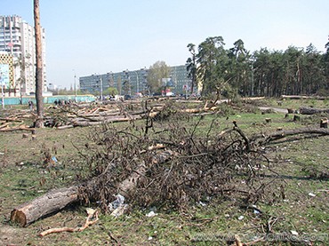 А у нас хаос; ми за лічені роки втратили половину зеленого масиву Києва! З цього приводу чимало написано, але, на жаль, це не доходить до можновладців. Люди певної вулиці регулярно виходять на захист острівців зелені, борються за них, виникають бійки. Але і після того дерева часто спилюють, а на їхньому місці виростає "монстр"-будинок.